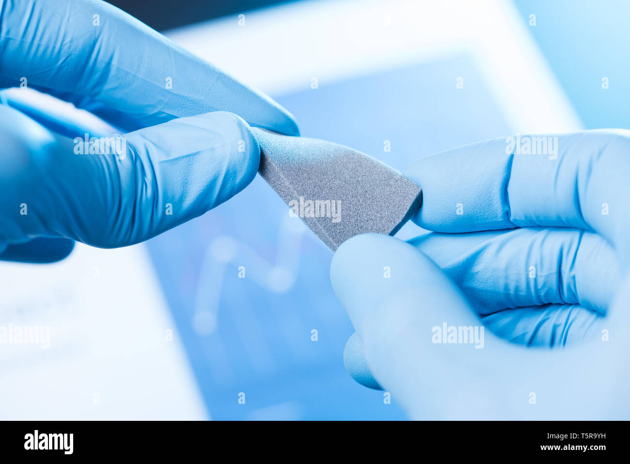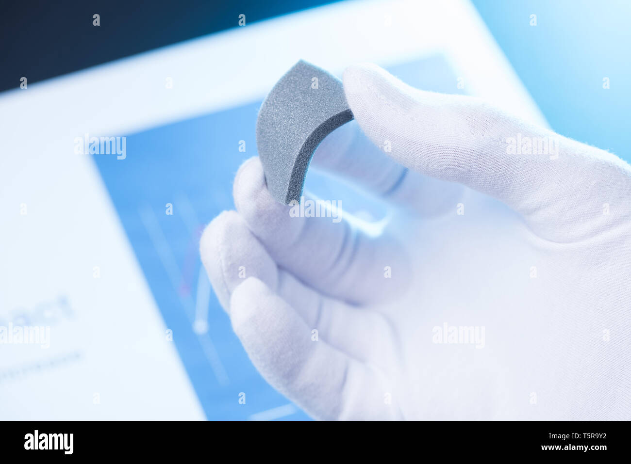 Scientist Hand In Gloves Hold And Bend Small Piece Of Gray Porous Foam New Type Of Material With Different Properties Research Concept Stock Photo Alamy
