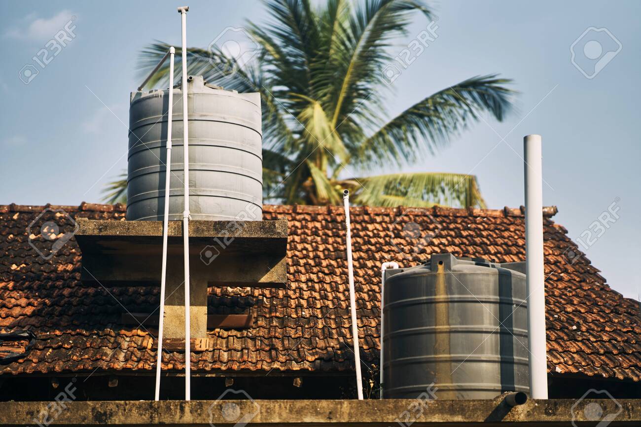 Water Tanks On The Roof Of The Building Water Supply In India Stock Photo Picture And Royalty Free Image Image 139222966