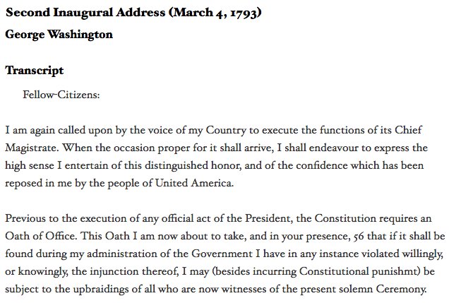 Prageru On Twitter George Washington S Entire Second Inaugural Address Was 135 Words So Cool