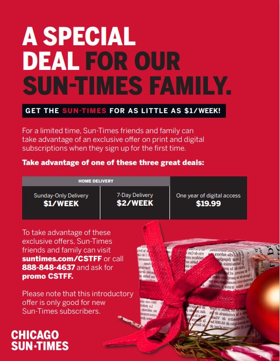 Stephanie Zimmermann On Twitter Friends If You Re Not Already A Chicago Suntimes Subscriber Check It Out A Holiday Code For A One Year Digital Subscription That Works Out To Just 5 Cents