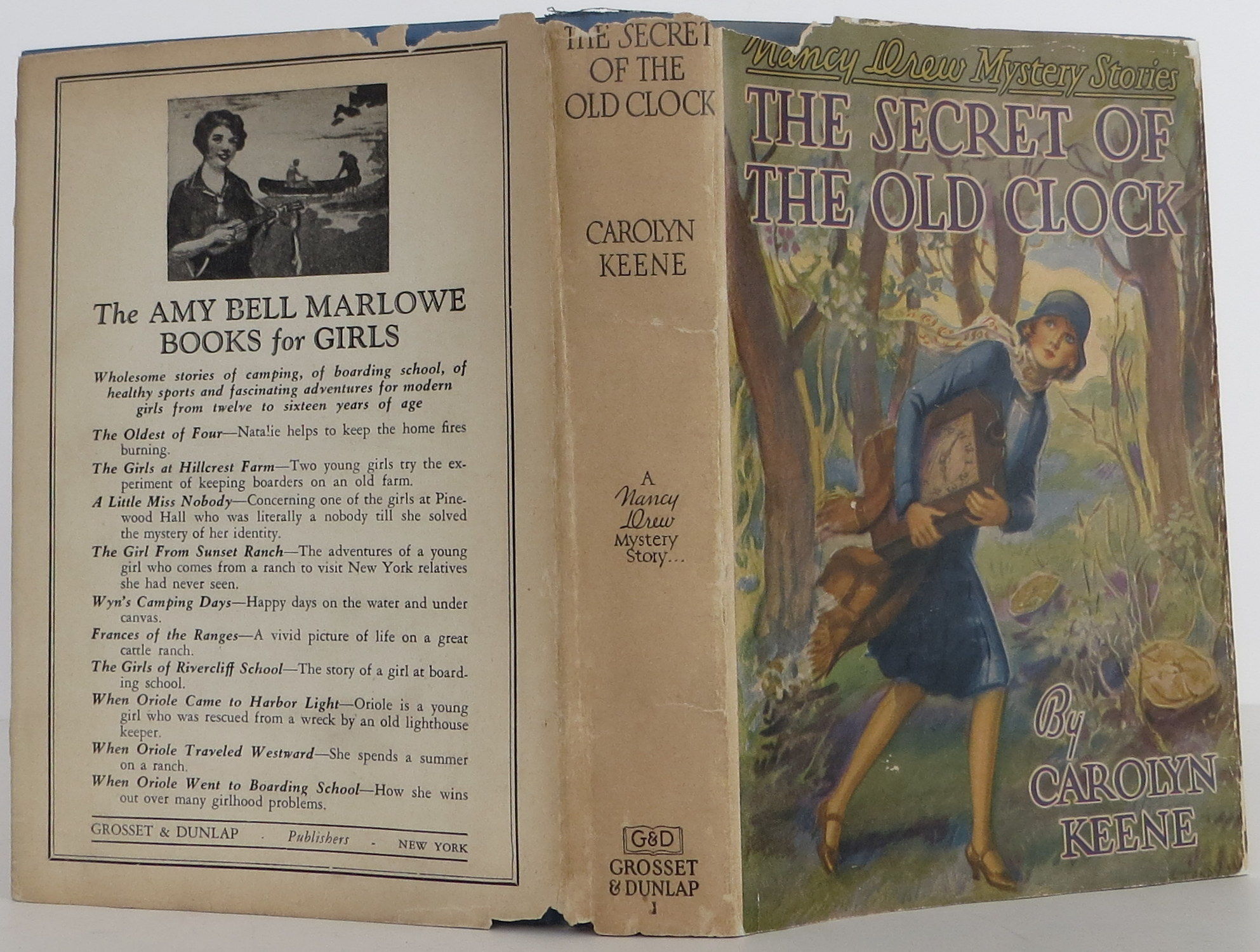 The books do not have ink on the top edge. The first Nancy Drew book 1930s The Secret of the Old Clock was ghostwritten by Mildred Wirt who penned 23 Nancy Drew titles as Carolyn Keenethe same pseudonym used today. These format 1 books were out beginning in 1930 through early 1932.