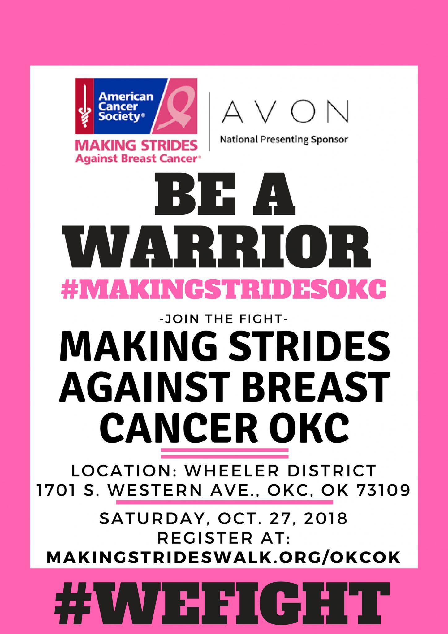 The American Cancer Society Making Strides Against Breast Cancer walk is a powerful event to raise awareness and funds to save lives from breast cancer. Communities across the nation continue to come together to walk in unison supporting the fight against breast cancer. Raised by 17 people in 9 months Share on Facebook Donate Donate Join Share on Facebook.