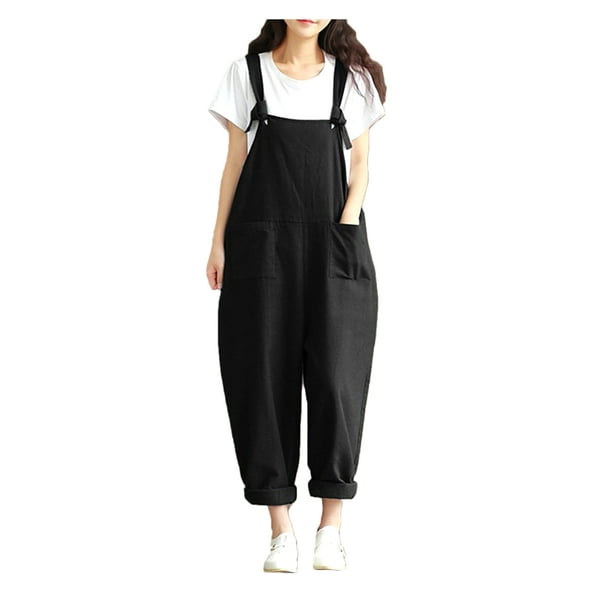 Womens Loose Linen Cotton Jumpsuit Dungarees Playsuit Trousers Overalls Black Walmart Com Walmart Com
