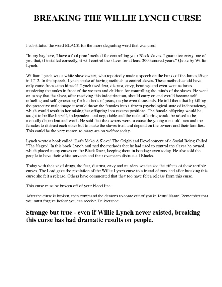 Breaking the Curse of Willie Lynch. Download Breaking the Curse of Willie Lynch. You may like the way the writer.